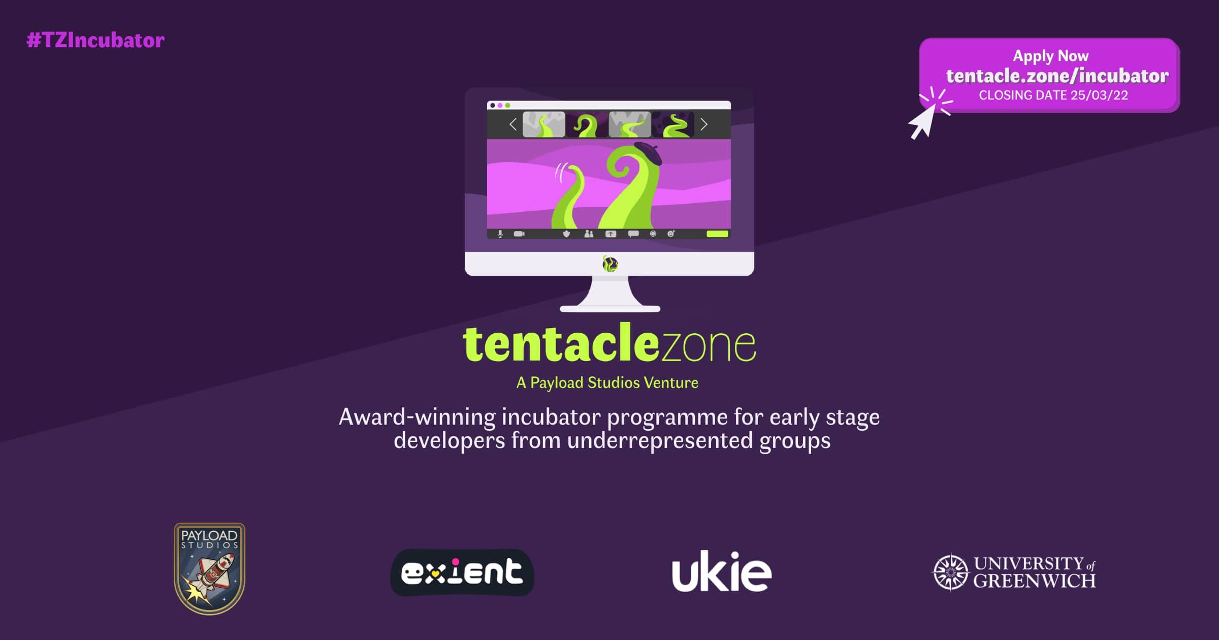 Payload Studios today announced that applications are open for the 2022 virtual Tentacle Zone Incubator for early stage developers from underrepresented groups. Applicants are encouraged from the UK, Europe, Africa, Asia and the Middle East, between the GMT and +4 hours time zone.