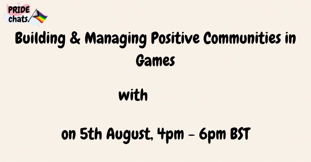 - LGBTQ+ Presence in Games & Player Communities with Jagex, on Thursday 29th June.
